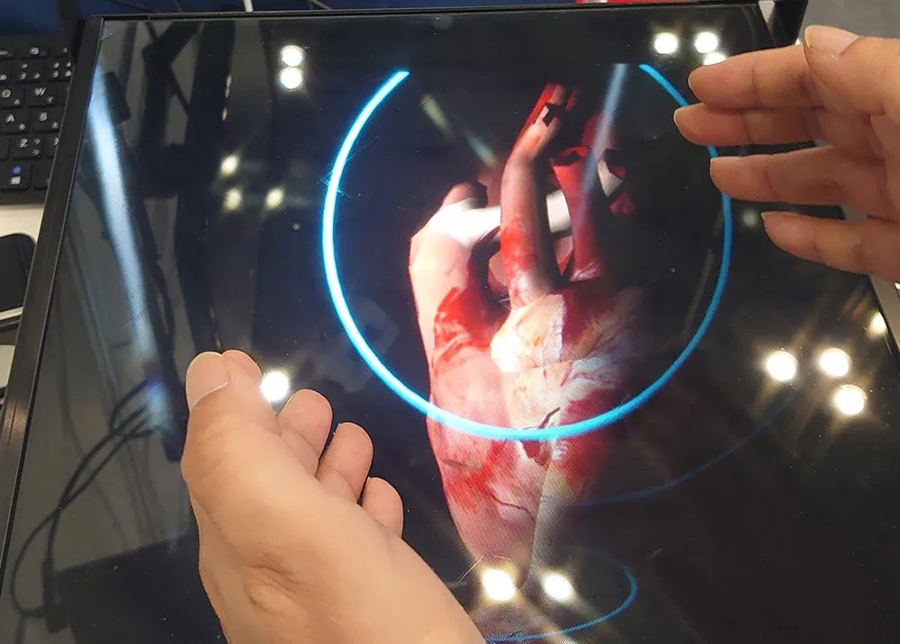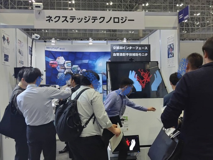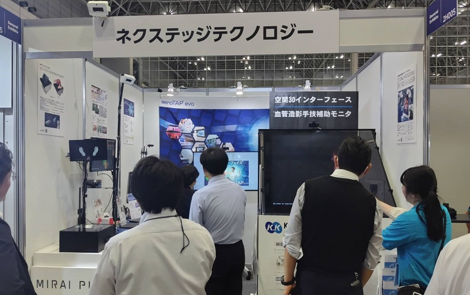 株式会社ネクステッジテクノロジーのブースにて、大画面空中ディスプレイで3D空間の操作体験!進化するタッチレスの技術を体感!