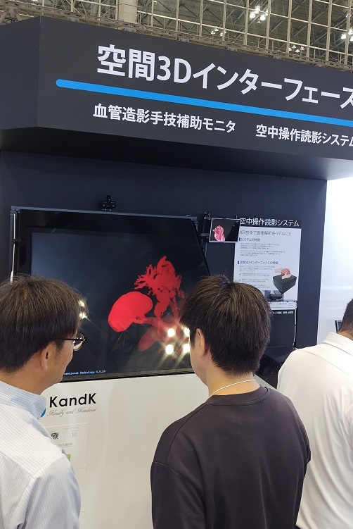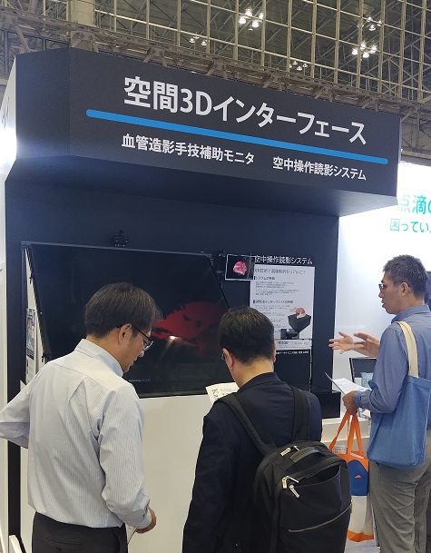 血管造影手技補助装置【空中ディスプレイ+非接触操作】を展示。 画像操作に複眼カメラセンサーを採用した空中ディスプレイは、世界初の革新的技術です。 「40インチ」への大画面化により、映像の見やすさと直感的な一連の操作が可能となり、高精度な画像診断が体験できます。 ぜひ弊社ブースでご体感ください。